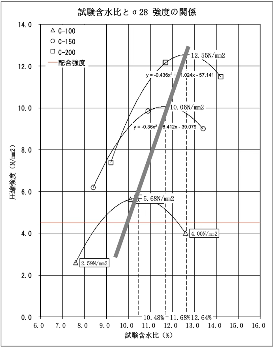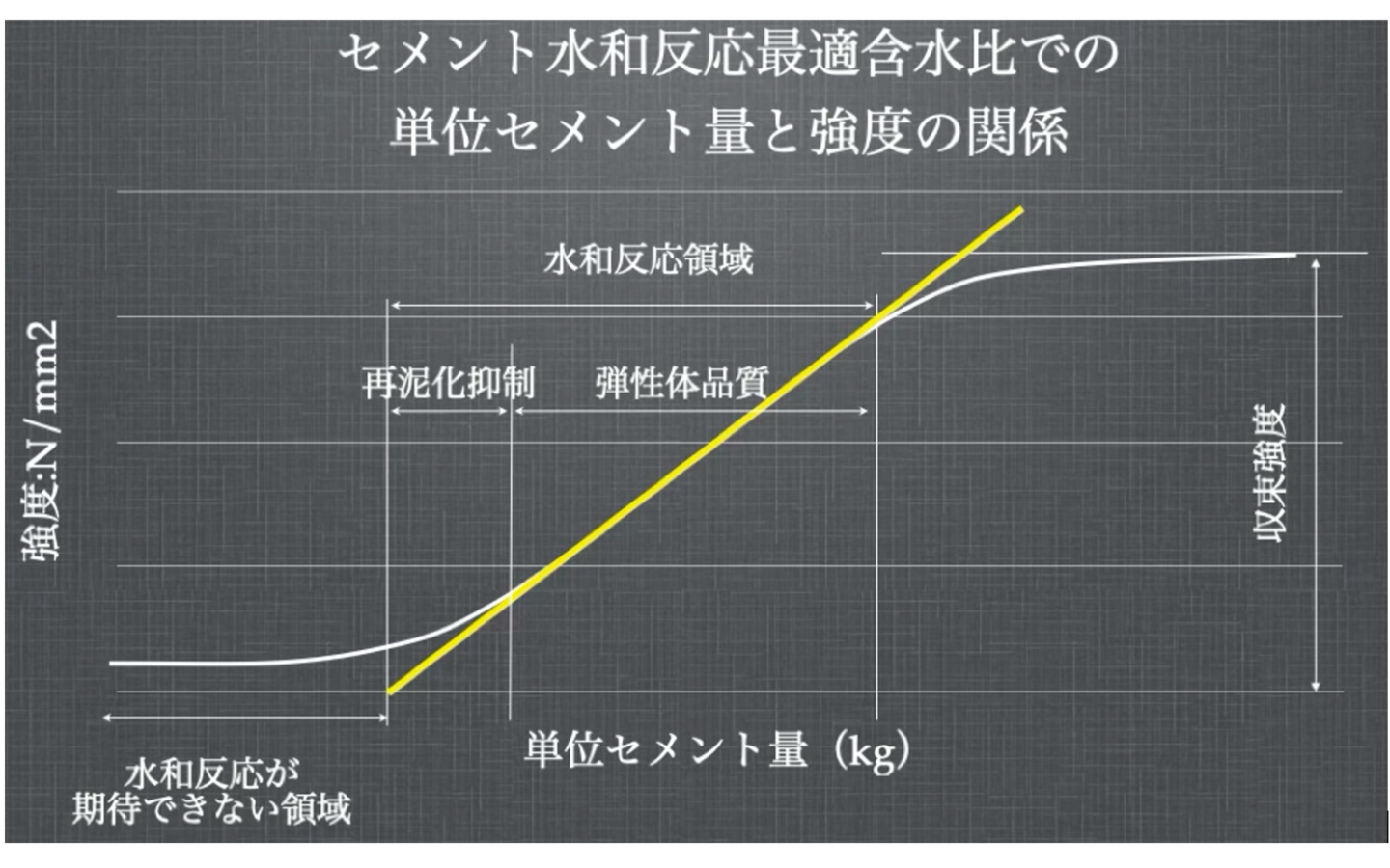 ・セメント水和反応が明瞭な単位セメント量領域・含水比領域の特定